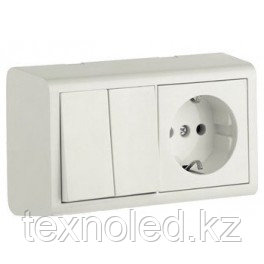 Горизонтальный блок Выключатель 2кл + Розетка с з/к NIVO в Алматы