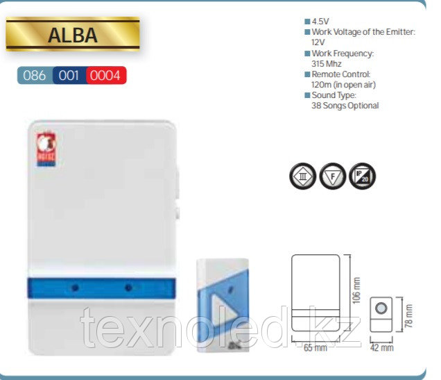 Дверной звонок Alba, беспроводной, с мелодией, Алматы